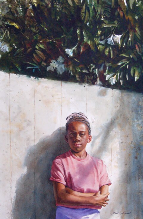 Artist Statement: “Faces, especially eyes, the windows to the soul have been a favorite subject of mine. The twaji, the gaze of God coming out of each person’s eyes is unique and sacred. I am honored to experience it with all media.”